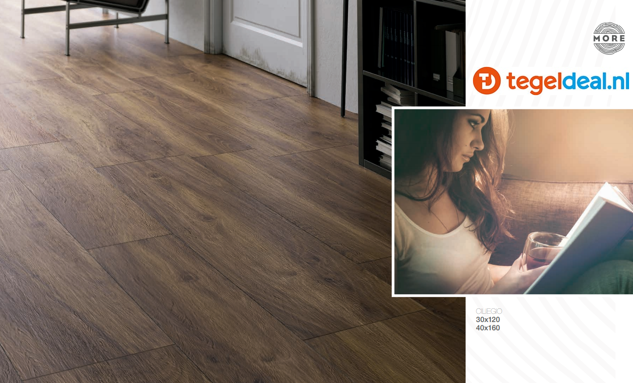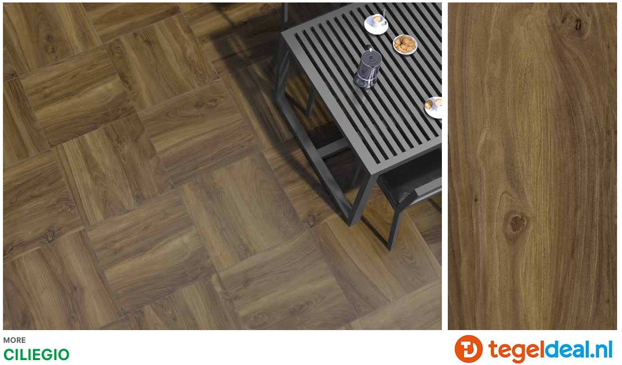 Castelvetro More is een prachtig keramisch parket met eikenhout als basis. De serie More brengt een landelijke sfeer met warmte en charme in elke ruimte. De serie More komt in 7 verschillende kleurstellingen en 5 afmetingen. Dit keramisch parket is gerectificeerd (rechte kanten) en dus met een smalle, bijpassende, voeg te plaatsen. Er is ook een grip-uitvoering voor een extra stroef oppervlak. Keramische houtlooktegels zijn in vergelijking tot echte parket vloeren makkelijker te onderhouden. Deze tegels zijn kleur-, kras- en slijtvast.