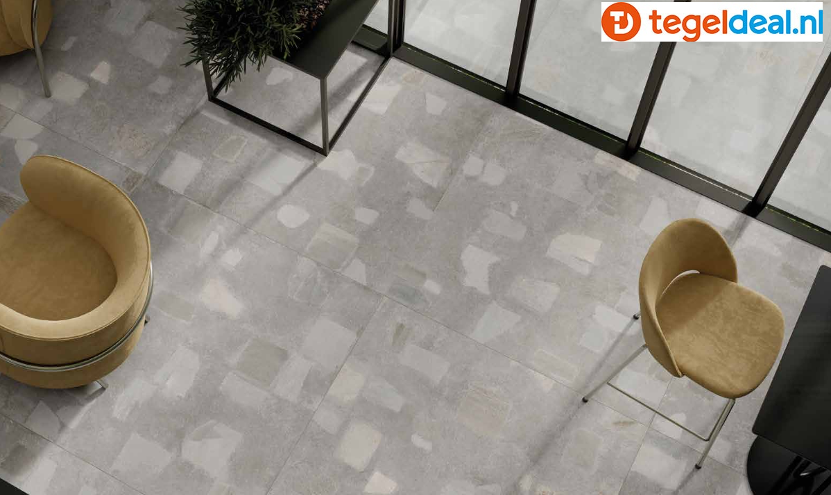 Keramische beton- / natuursteenlook terrastegels SIL Ceramiche Concrediana Ivory