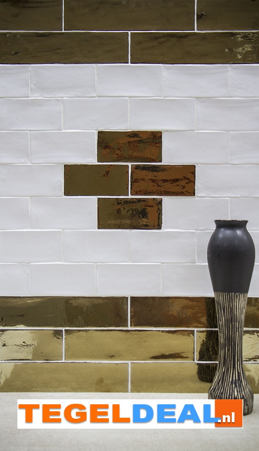Deze schitterende goudkleurige wandtegels hebben een authentieke, nostalgische uitstraling doordat de randen en het oppervlak niet strak gevormd zijn, maar licht golvend. Deze tegeltjes passen zowel in een stoer, moderne of landelijke inrichting. In de keuken staan deze wandtegels prachtig, maar ook in de badkamer is deze gouden tegel een eyecatcher. De tegeltjes zijn niet maatvast. Deze tegels geven in elke lichtomstandigheid een andere uitstraling.