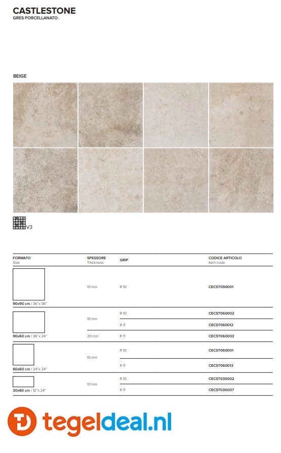 Castlestone is de porseleinen grescollectie van ClassTile met een verfijnde uitstraling die unieke en elegante ruimtes creëert. De collectie kenmerkt zich door elegante en authentieke patronen die de esthetiek weerspiegelen van de steen die gebruikt werd in Franse renaissancekastelen. De serie is leverbaar in 4 formaten, die ook mooi met elkaar te combineren zijn in een module, en drie trendy kleuren (ivoor, beige, grijs). Castlestone is geschikt voor vloeren en wanden in huis en de uitvoering van 60x90 cm met een dikte van 20 mm is geschikt voor een mooie continuïteit met de buitenomgeving. Het is een tijdloos product met een warme en eigentijdse stijl, perfect voor binnen én buiten.