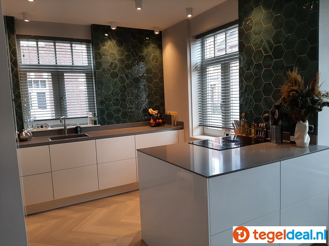 Groene tegeltjes in de keuken in een hexagon-formaat!
